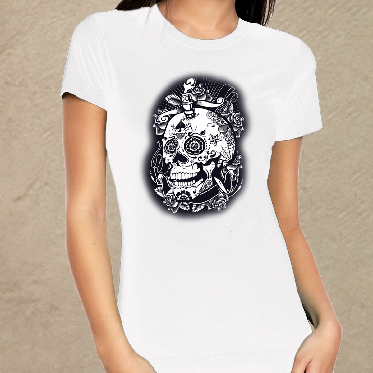 Mintás koponya fehér női póló