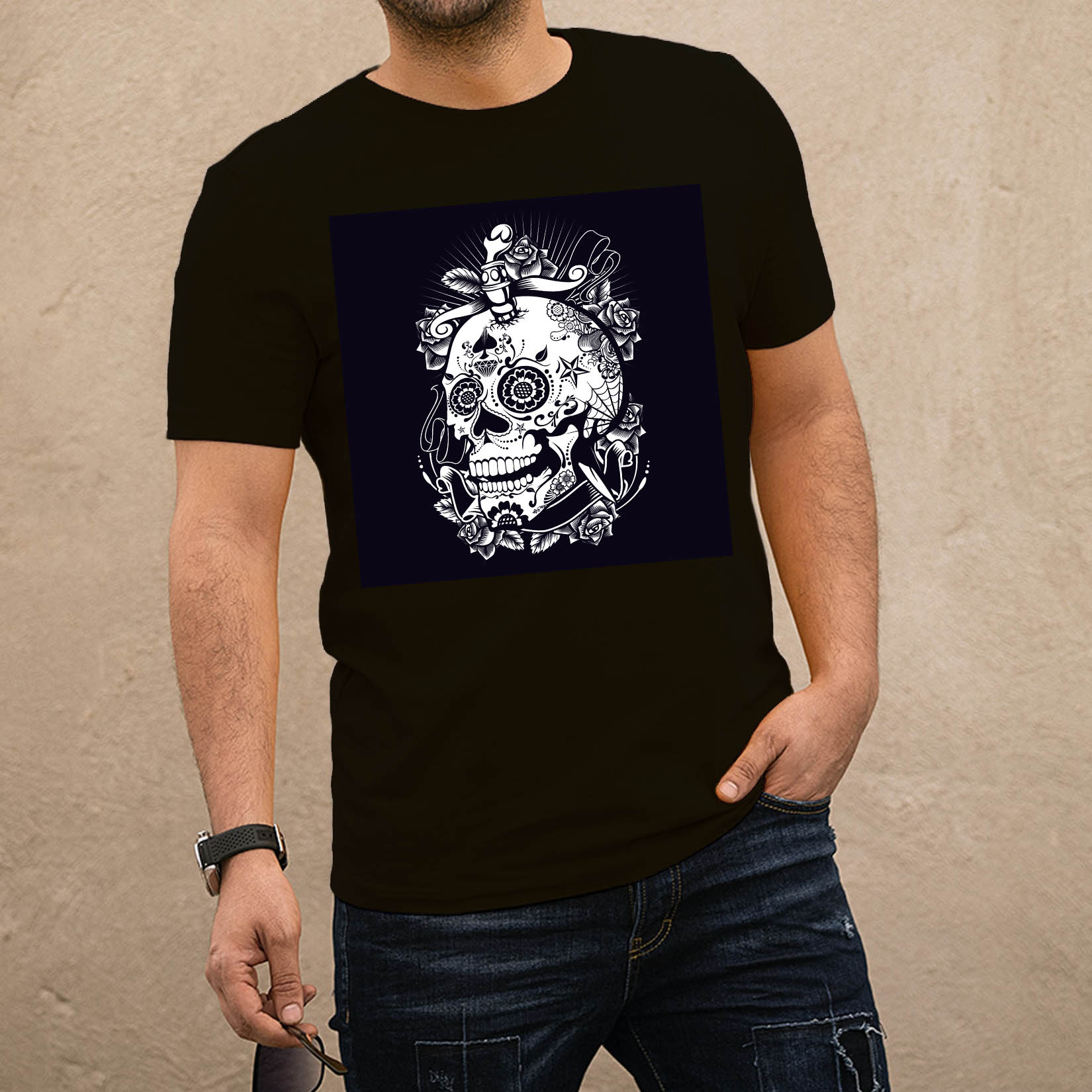 Mintás koponya fekete póló