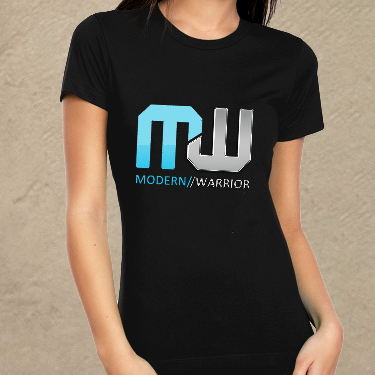 Modern Warrior fekete női póló kék/ezüst felirattal
