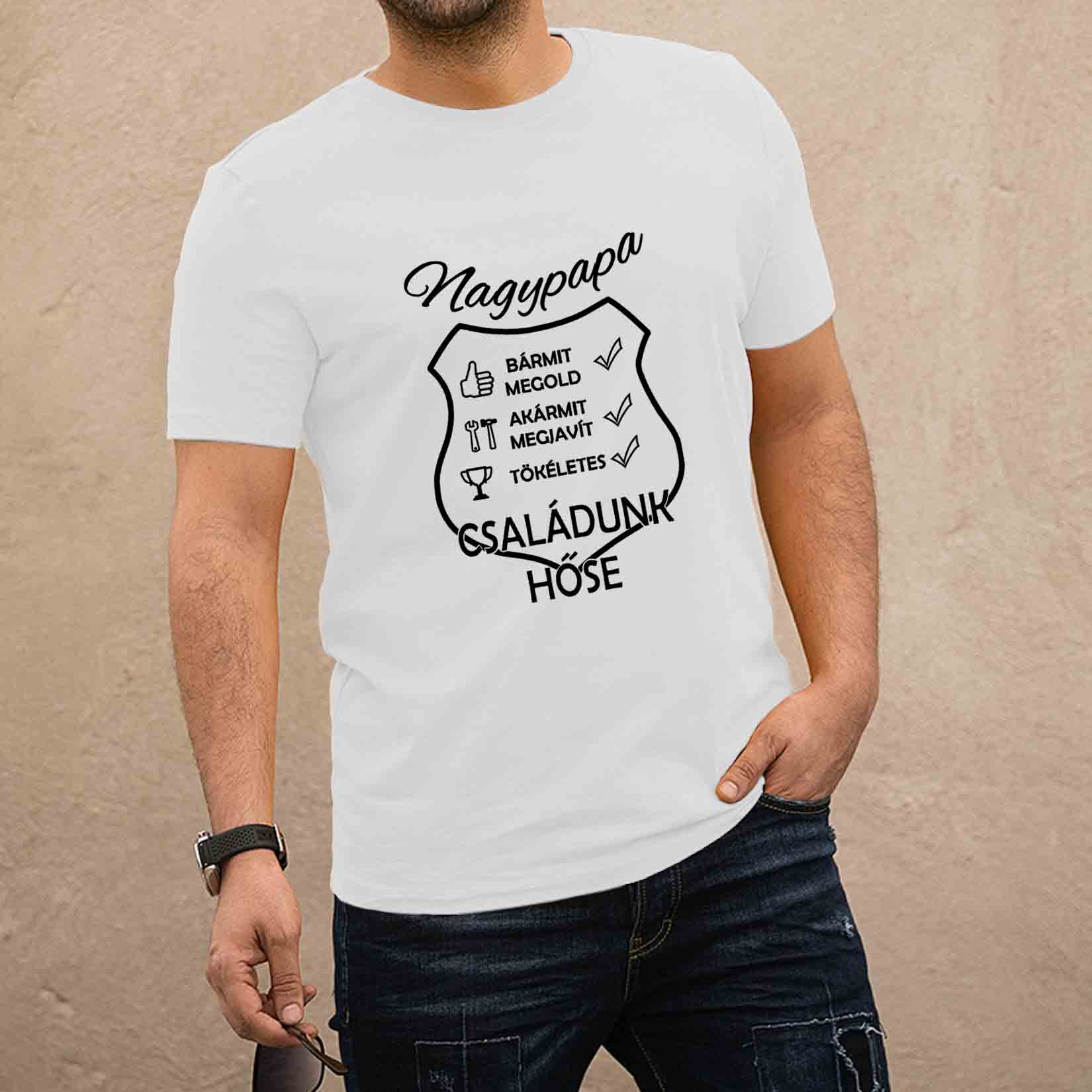 Szabás: kereknyakú, rövid ujjú, egyenes szabású