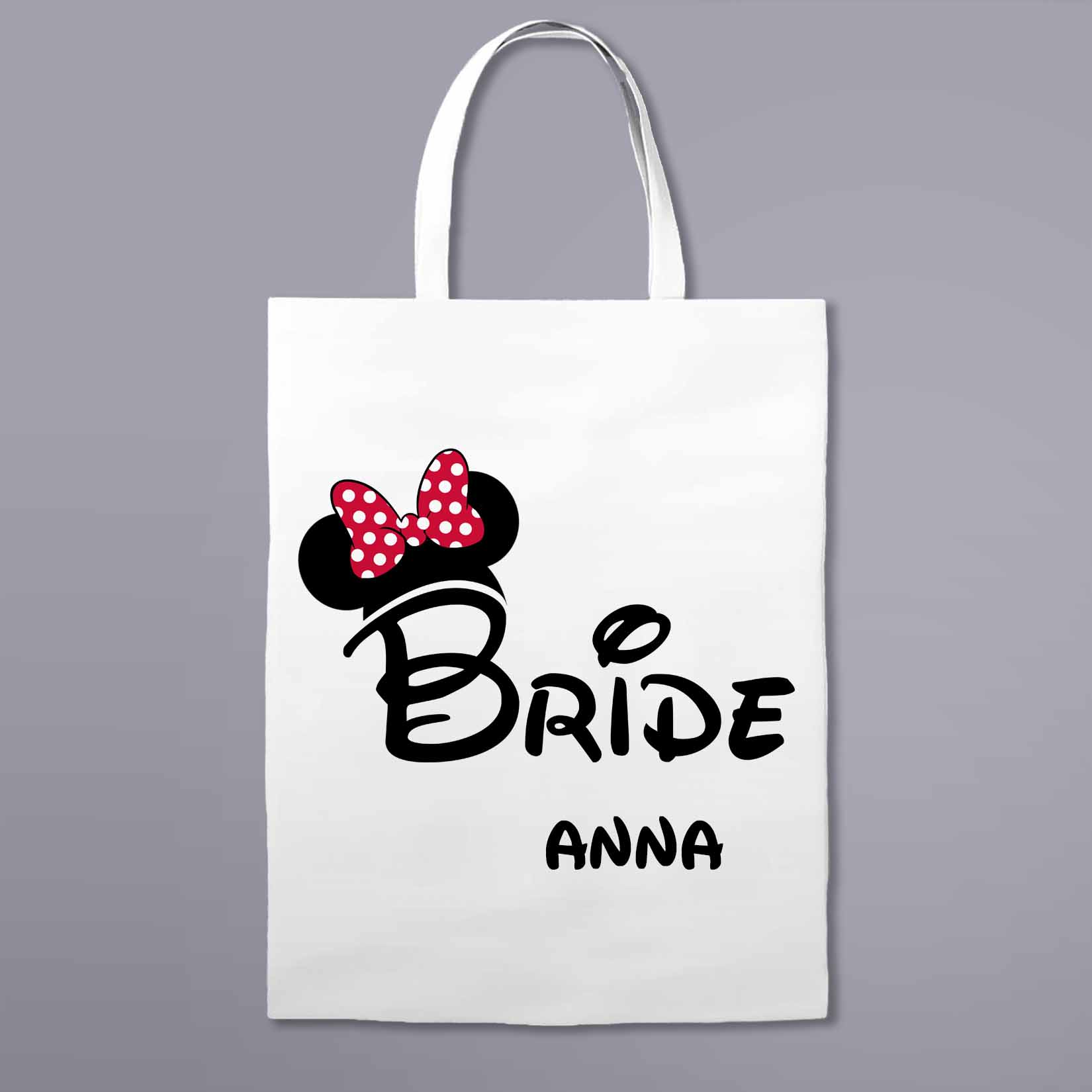 Névre szóló vászontáska lánybúcsúra „Bride” (fehér)
