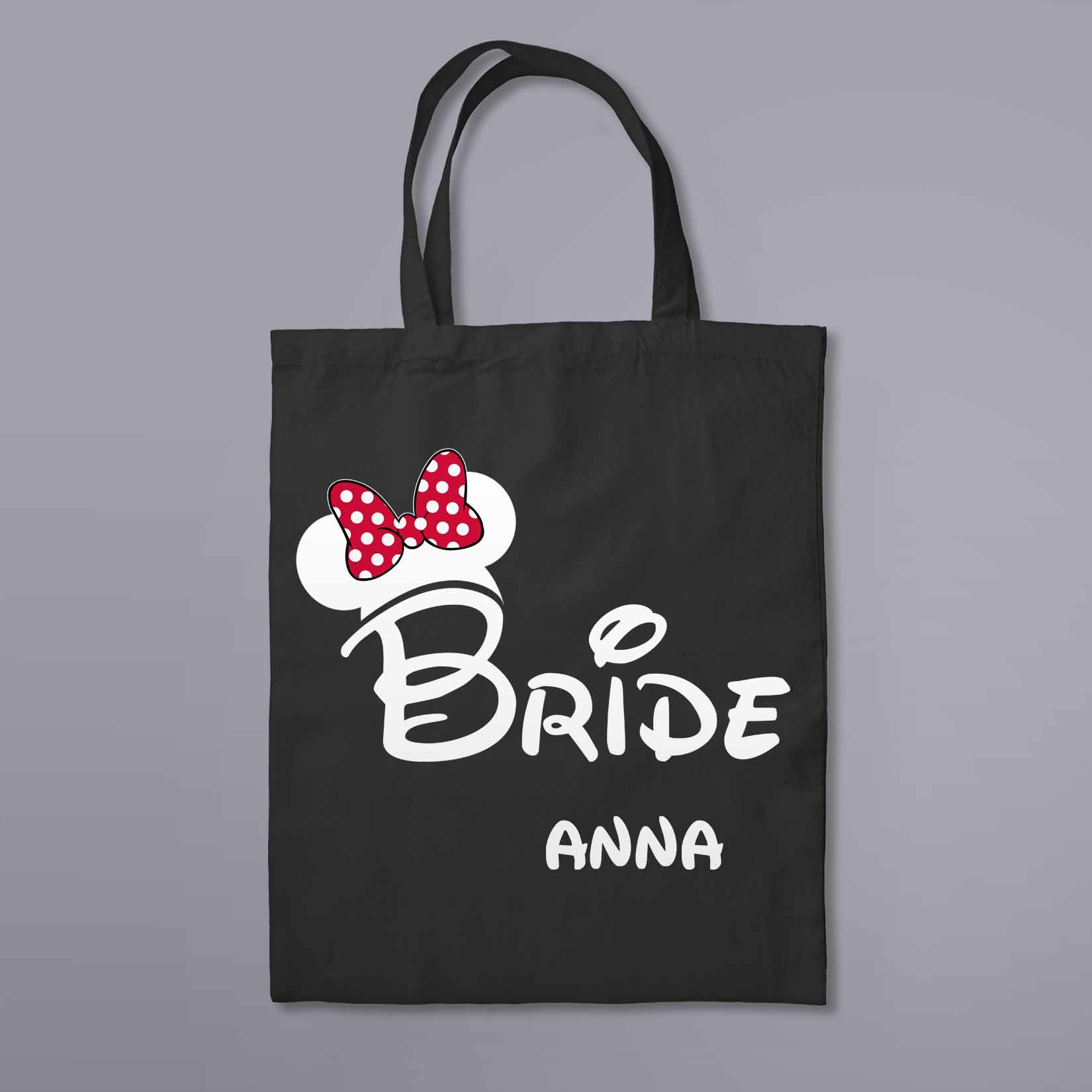 Névre szóló vászontáska lánybúcsúra „Bride” (fekete)