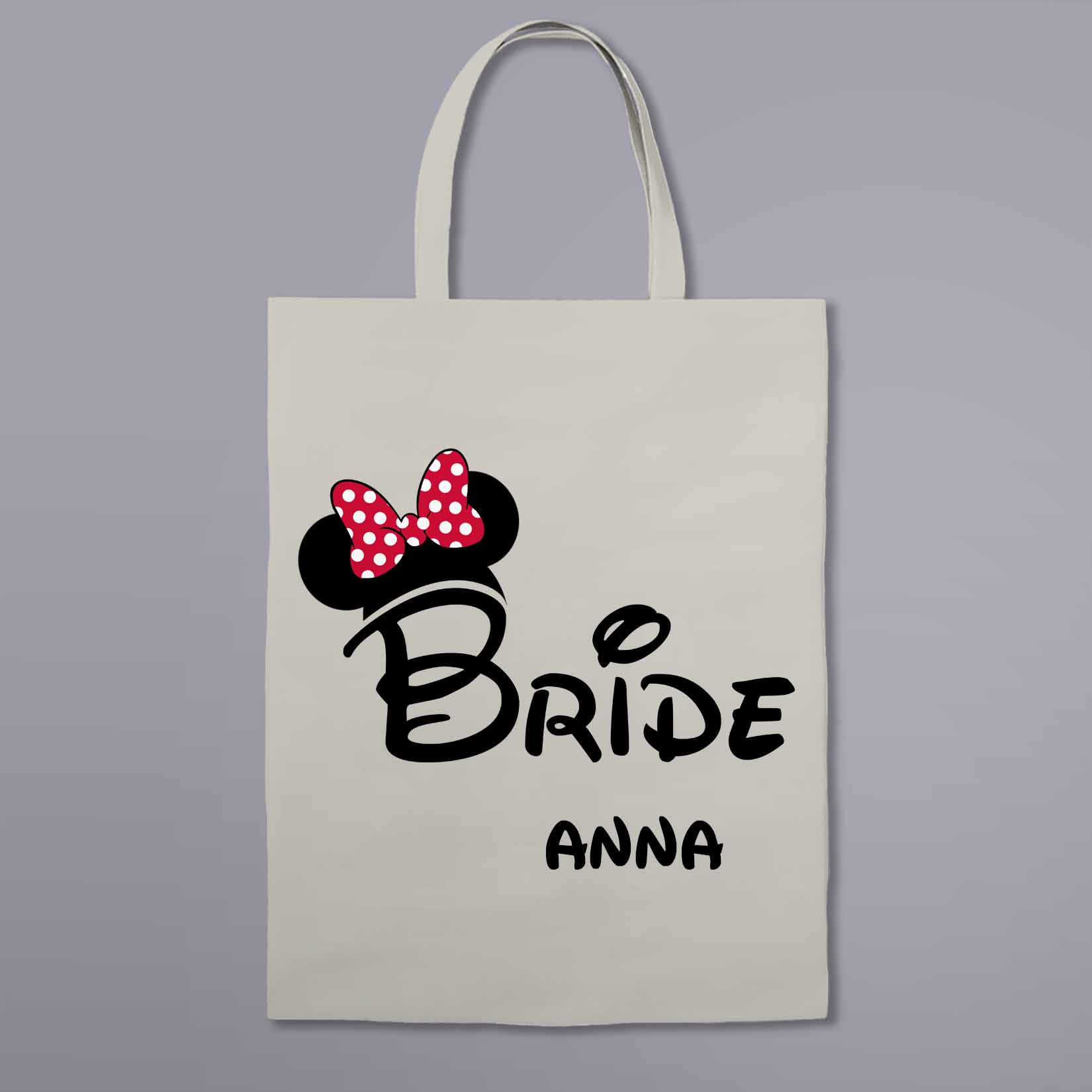 Névre szóló vászontáska lánybúcsúra „Bride” (natúr)
