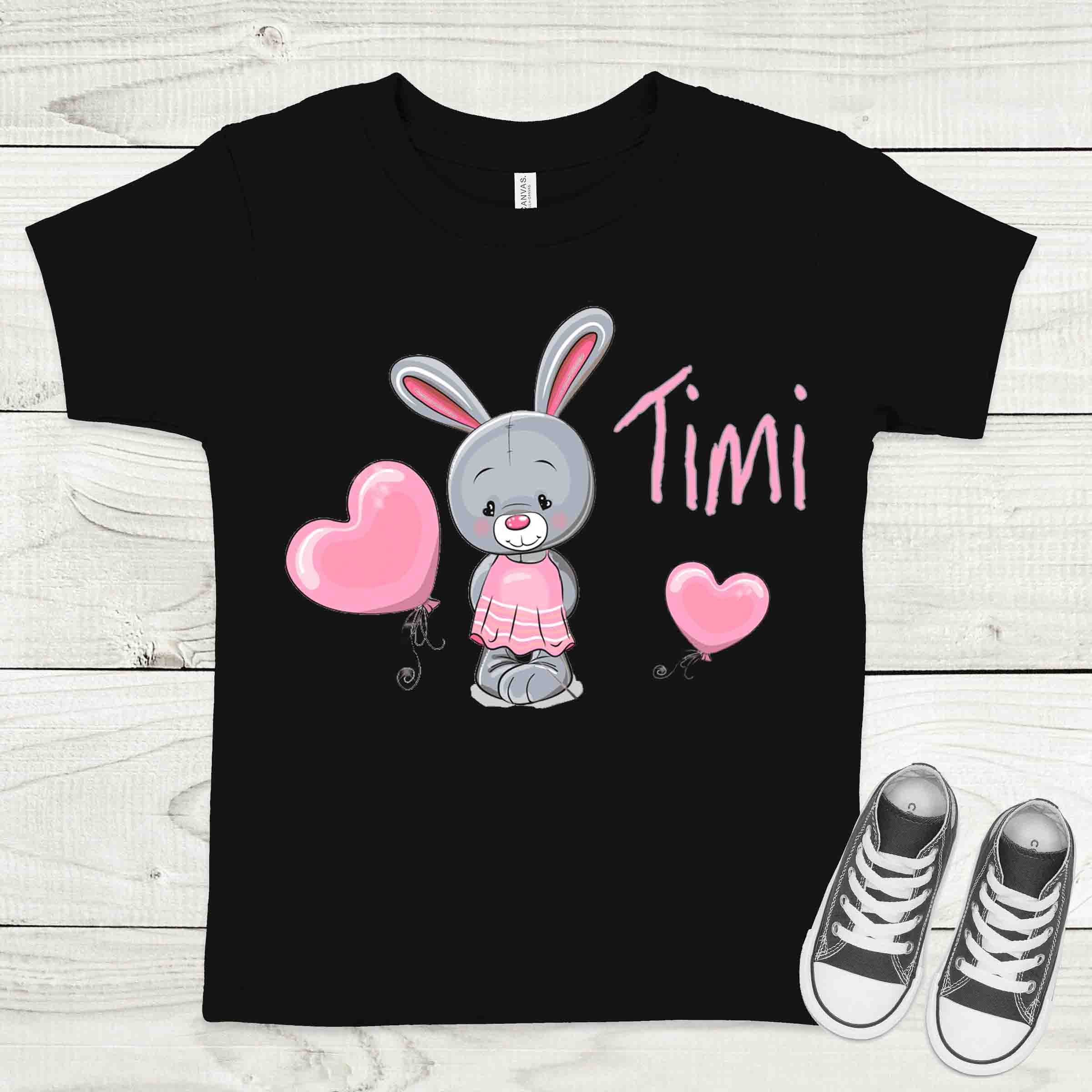 Nyuszi szivecskékkel fekete gyermek póló névvel
