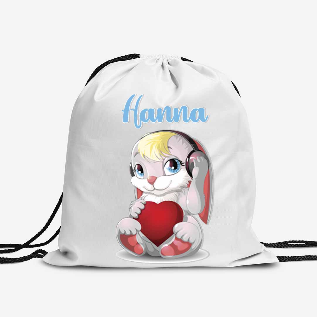 Nyuszis fehér tornazsák névvel
