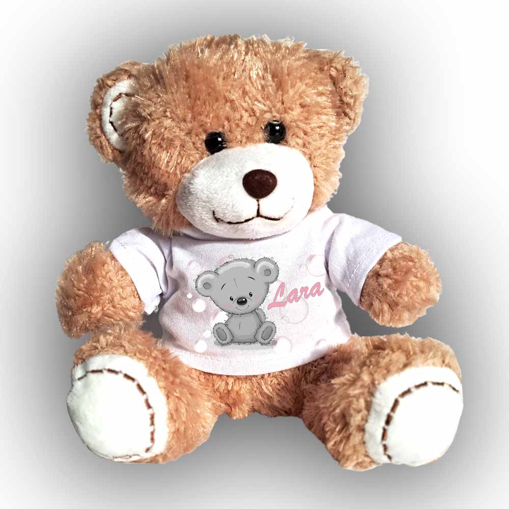 Plüss maci szublimálható pólóval.