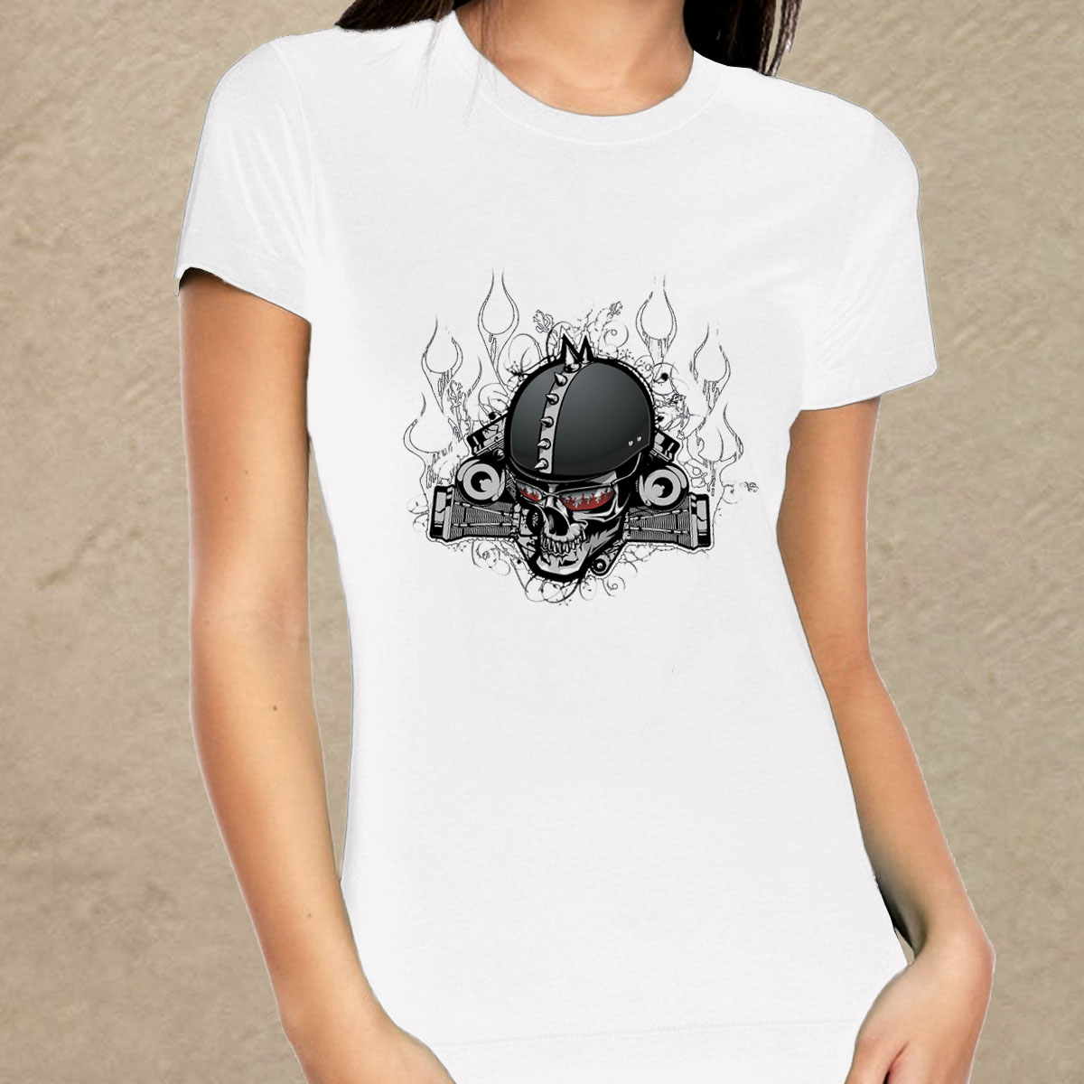 Sisakos koponya fehér női póló