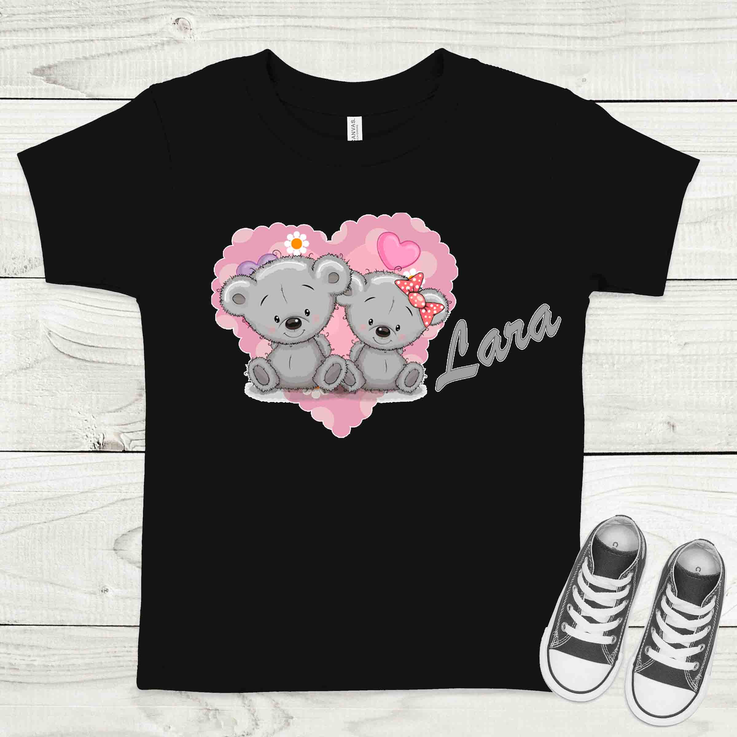 Szerelmes macik fekete gyermek póló névvel